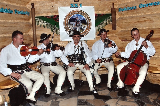 8. Gazda posiadów Bronislaw Orawiec-Wysni z muzykantami. Od lewej: Jan Trebunia-Tutka, Andrzej Jarzabek, Bronislaw Orawiec-Wysni, Stanislaw Galica-Kasecka, Robert Czech.