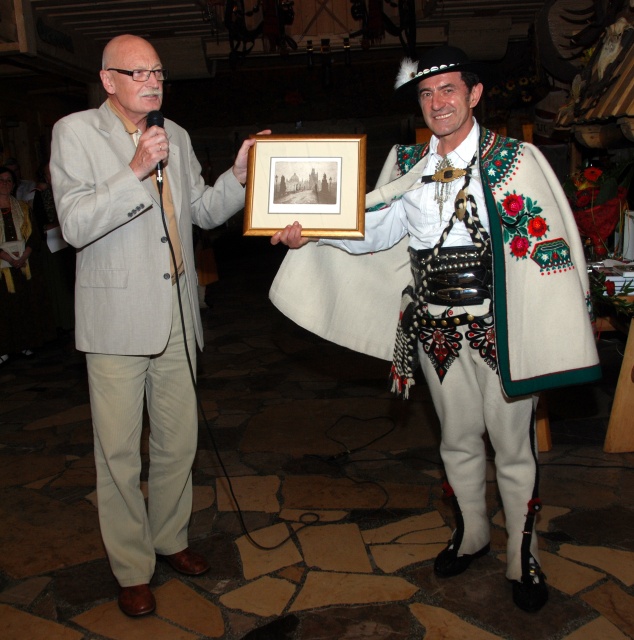 20. Prof. Władysław Pierzchała prezentuje i wręcza B. Orawcowi rycinę „Solidarność Słowacka”.