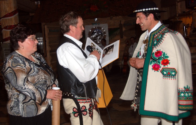 36. Właściciel Prywatnego Muzeum Narciarstwa Mieczysław Król-£ęgowski wręcza album B. Orawcowi na temat swoich pasji życiowych.