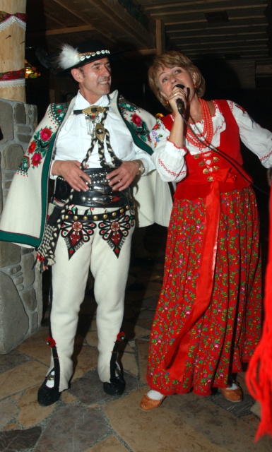 46. Artystka, była członkini Zespołu Pieśni i Tańca „Mazowsze” p. Anna Lichosyt wykonuje klasyczne pieśni tego słynnego zespołu. Obok gazda posiadów dr Bronisław Orawiec-Wyśni. Zakopane, 11 sierpnia 2010 r. |