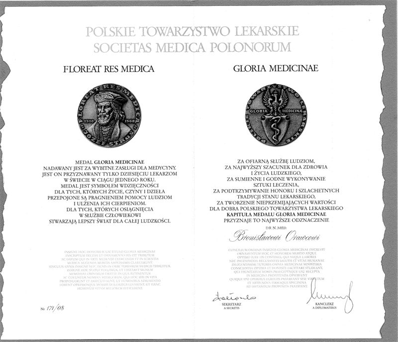 dyplomem "Gloria Medicinae". Wyróżnienie to,