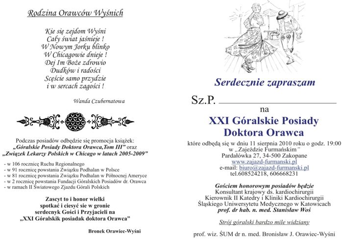 Zaproszenie na XXI Góralskie Posiady doktora Orawca