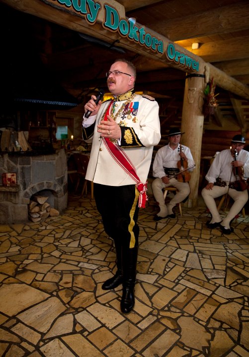 37. Przy mikrofonie Mistrz Superior BKS Jan Pondel. Obok Mistrz Loży Podhalańskiej BKS Bronisław Orawiec-Wyśni. Karczma Baca. Poronin, 29 maja 2015 r.