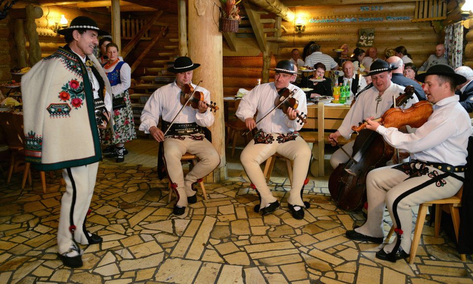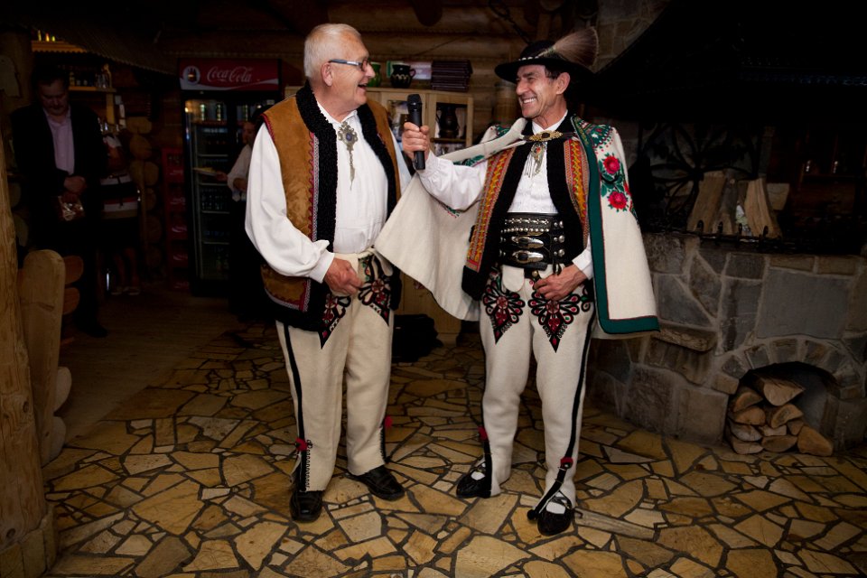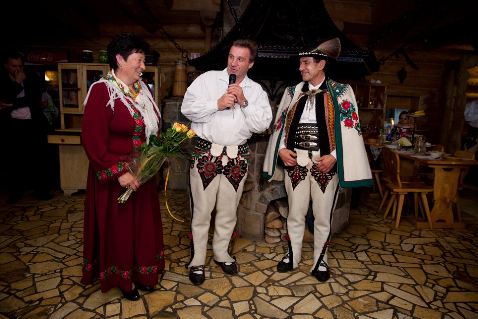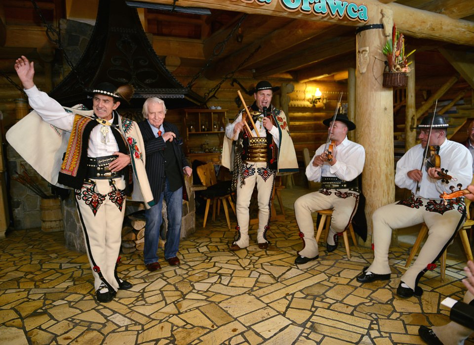 31. Gazda posiadów dr Bronisław Orawiec-Wyśni w towarzystwie członków Zespołu „Regle”. „Karczma Baca”. Poronin, 29 maja 2015 r.
